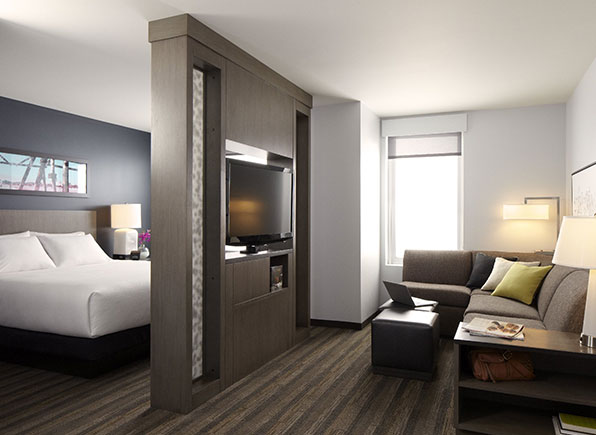 HYATT house SAN JUAN will offer 126 studio, one and two bedroom kitchen suites, and will feature Atlantic ocean and San Juan Bay views. The hotel will be part of a 113-acre master planned project, which currently includes the 580,000 sq. ft. state-of-the-art Puerto Rico Convention Center. Located in Isla Grande, the hotel will be in close proximity to the Financial District in Hato Rey, Isla Grande Airport and the Port of San Juan. Additionally, Hyatt House San Juan will be located near local points of interest, including Old San Juan, the Condado district, San Juan Central Park, and Plaza Las Américas. The hotel will be conveniently located in front of a water taxi pier, which will provide an alternative transportation option to surrounding areas of San Juan, including the new Bahía Urbana waterfront development. Hyatt House San Juan will also be adjacent to the proposed San Antonio Light Rail Station, which, upon completion, will provide easy access and connection to the greater San Juan metro area.
